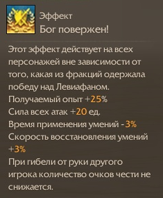 А если ваш морской транспорт оборудован гарпунами не ниже эпохи сказаний, вы можете отбуксировать мертвую тушу на Сверкающее побережье, выставив добычу на всеобщее обозрение. В таком случае победители Левиафана получат очки чести, а у подъемника каждый игрок сервера сможет получить полезное благословение длительностью 2 часа.