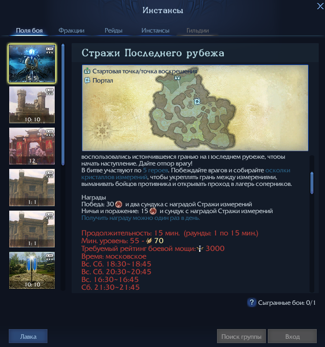 или открыть меню клавишами (по умолчанию Shift +:). Во вкладке «Поля боя» — «Стражи Последнего рубежа» нажмите «Поиск группы», чтобы объединиться с товарищами, или «Вход», чтобы присоединиться к случайным героям.