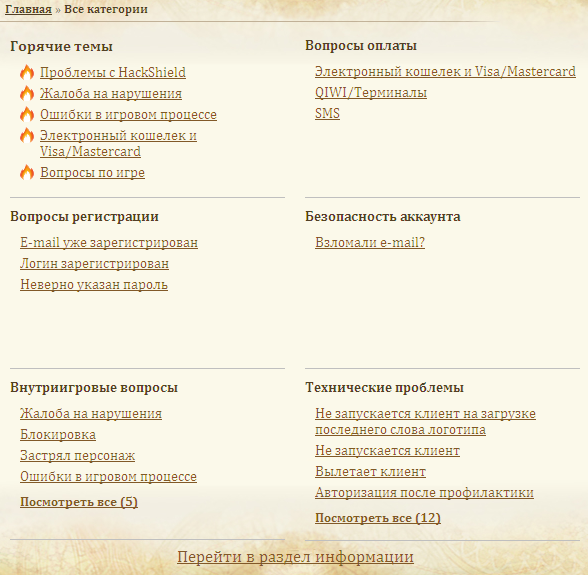 Находясь в игре, вы можете прочитать статьи по устранению типичных технических проблем, вопросам оплаты, безопасности аккаунта и другим нужным темам. Также все эти материалы доступны на сайте службы поддержки.